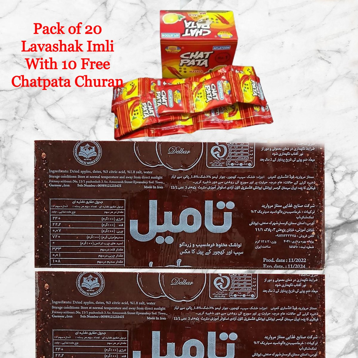 Lavashak Tamil Imli Pack of 20 with 10 Free Chatpata Churan Chooran